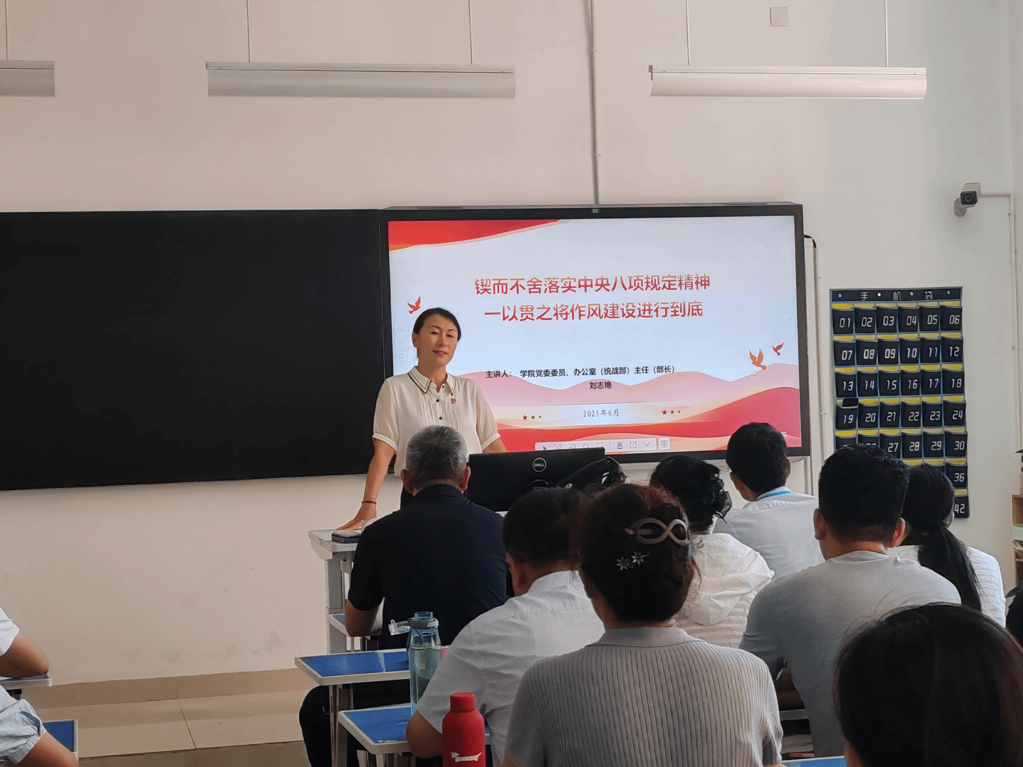 为推进深入贯彻中央八项规定精神学习教育学深走实,持续推进全面从严治党,强化党员干部作风建设,营造“风清气正”的校园环境,6月12日,公司党委委员、办公室(统战部)主任(部长)刘志艳同志到伟德国际victor1946为师生党员群众讲授专题党课。