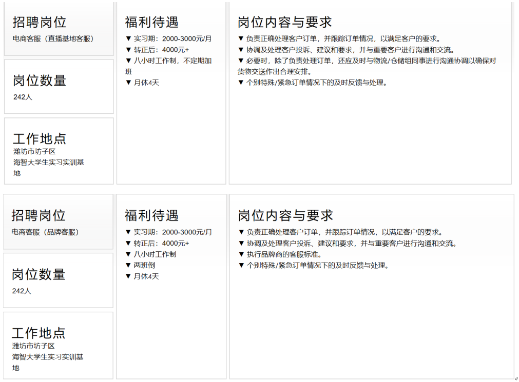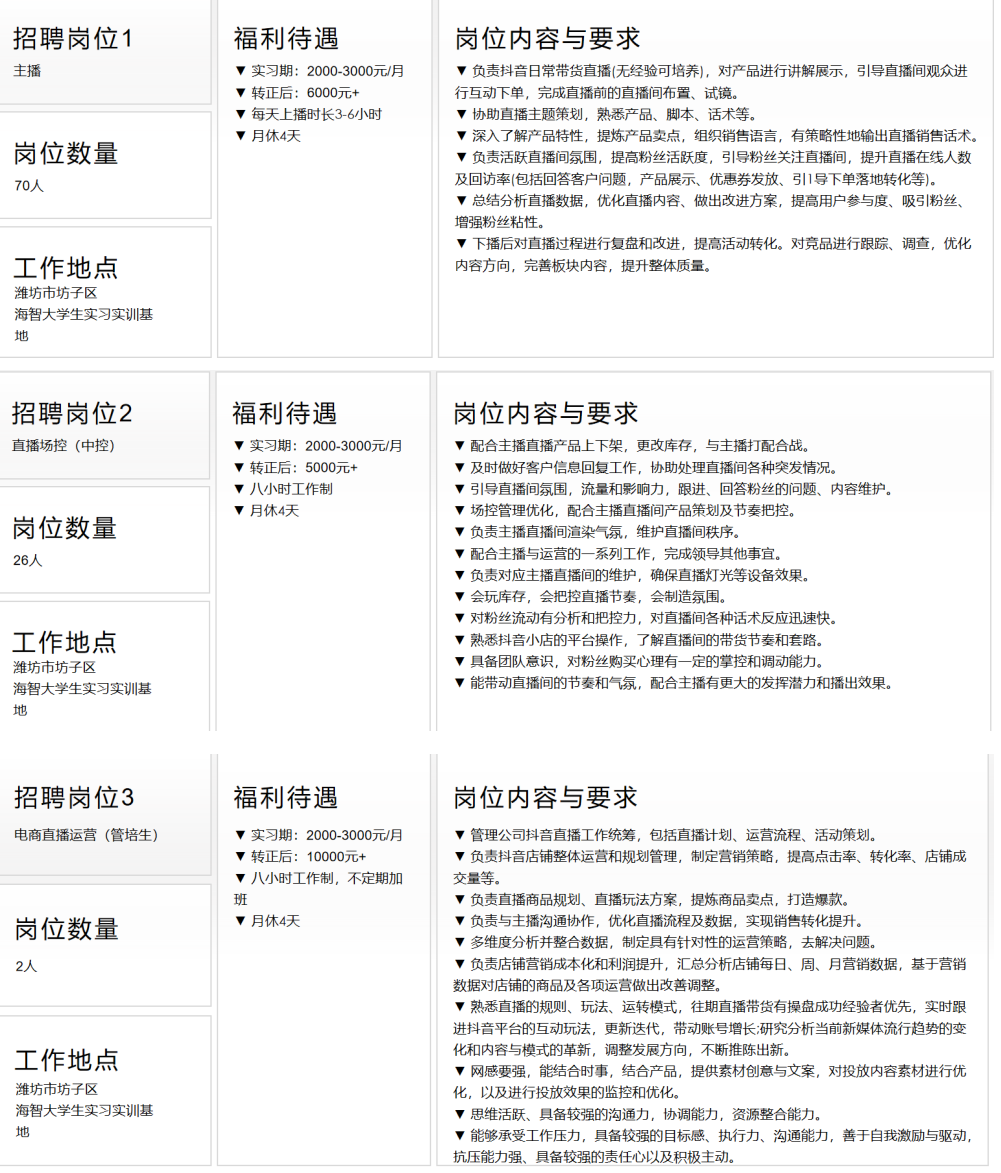 新媒体直播电商项目共设7个方向350个岗位,其中