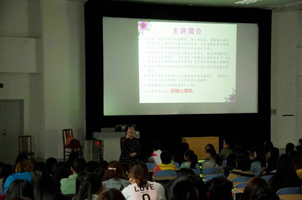 5月19日下午,该院邀请国家二级心理咨询师吉蕴老师为全体女生作了“关爱女生心理健康”专题讲座。讲座围绕“我健康我美丽”这一主题,通过互动讨论、真实案例、精彩视频等形式,为同学们生动而深刻地阐释了女性健康美丽的内涵和意义,教育女生恰当处理同学关系,做一个举止文明、内外兼修的优秀女生。