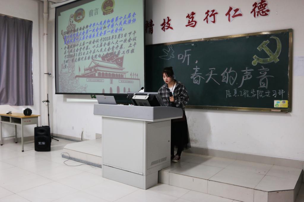 活动伊始,主持人通过PPT对2018全国两会进行简单介绍,让同学们了解两会热点并播放了李克强总理答记者问的视频。视频播放结束后,同学们开展“两会,我想对你说”活动,同学们对两会中热议的话题各抒己见,共同探讨。