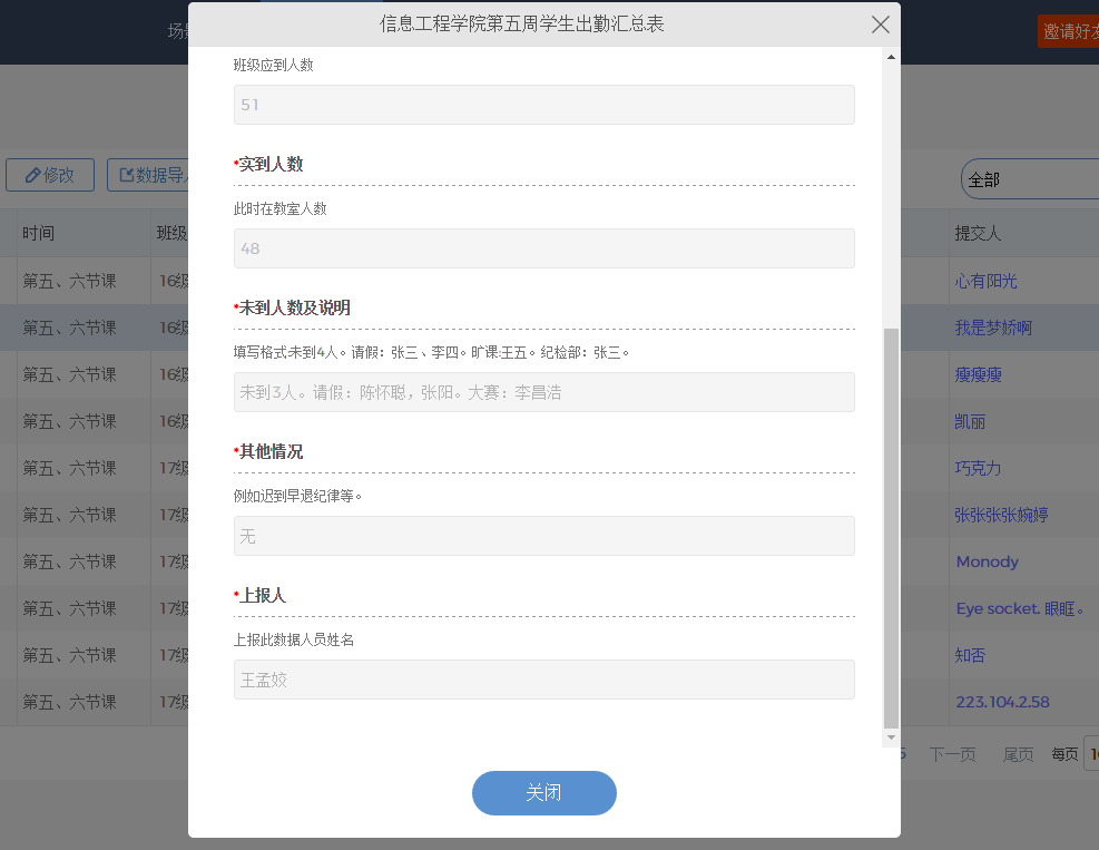 通过formtalk平台试运行,员工考勤工作效果显著。该平台以员工端数据收集,后台数据汇总为主线贯穿始终。在员工端,伟德国际victor1946建立班级学习委员微信群,由学习委员分别在规定时间段通过folmtalk平台提交班级出勤数据,做到员工考勤每人每天全覆盖。在教师端,通过folmtalk平台进行后台授权,班主任可实时查看班级员工出勤情况,做到班主任与班级信息实时互通,助力于高效开展班级管理工作。
