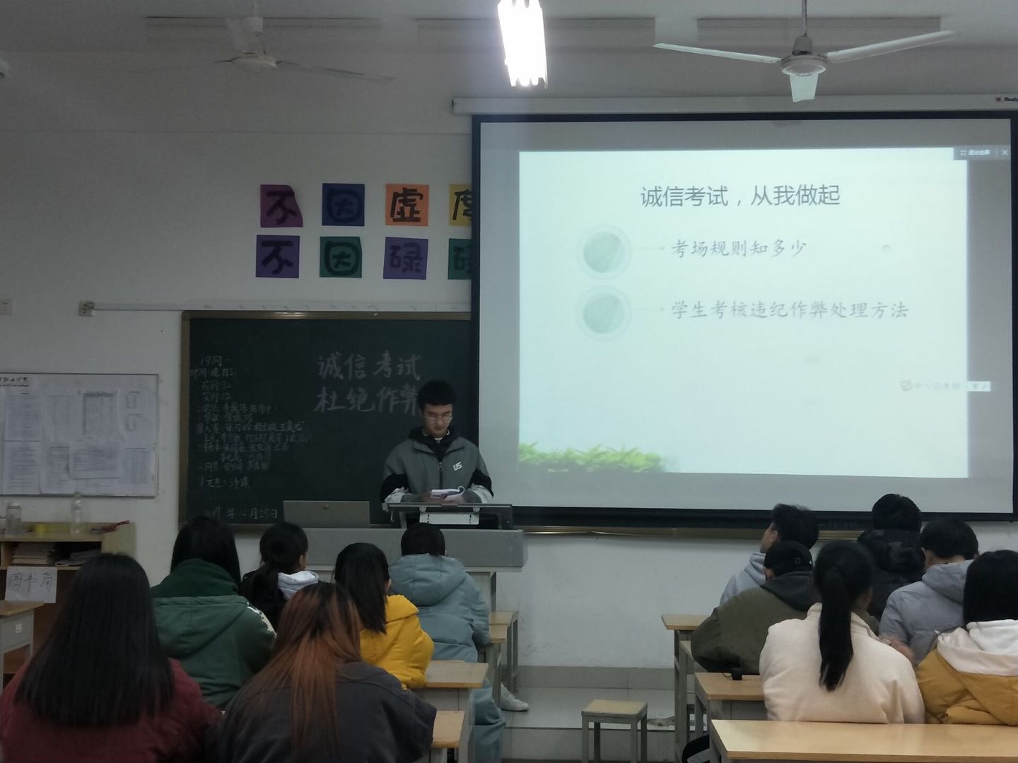 为进一步贯彻公司对严肃考风考纪的要求,12月25日晚自习,伟德国际victor1946各班级召开了“文明考风,诚信考试”主题班会。班会上,各班级负责人就考试作弊的危害和诚信的重要性,结合近年来考试违纪案例进行了分析,带领同学们学习了《伟德国际victor1946考试违纪舞弊处理办法》,督促同学们认真复习备考,严肃考场纪律。同学们也纷纷做出保证,要进一步端正学习态度,拒绝考试作弊,强化诚信考试意识,提升自我约束能力。会后,同学们共同签订了《诚信考试承诺书》。通过班会的开展,营造了良好的诚信考试认知与期末考试复习氛围。